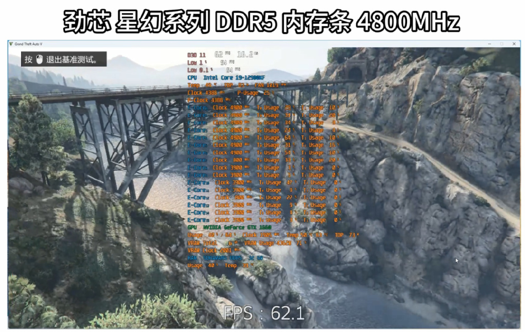 在GTA5中,默认1080P画质下,默频4800MHz时的平均帧率在62fps左右。开启XMP后,帧率竟然直接飙升到110fps左右,幅度蔚为可观。