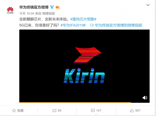 日前,@华为终端官方微博 公布了华为参展IFA 2019大会的第二波预热视频。短短10秒时间,视频中出现的rethink(新想法)、evolution(进化)、5G等三大关键词就引发了科技圈的无限联想。最后出现的Kirin(麒麟处理器)logo标志,更让人们意识到,传言中的华为下一代麒麟旗舰芯片“麒麟990”肯定将会在IFA2019大会中如期而至。