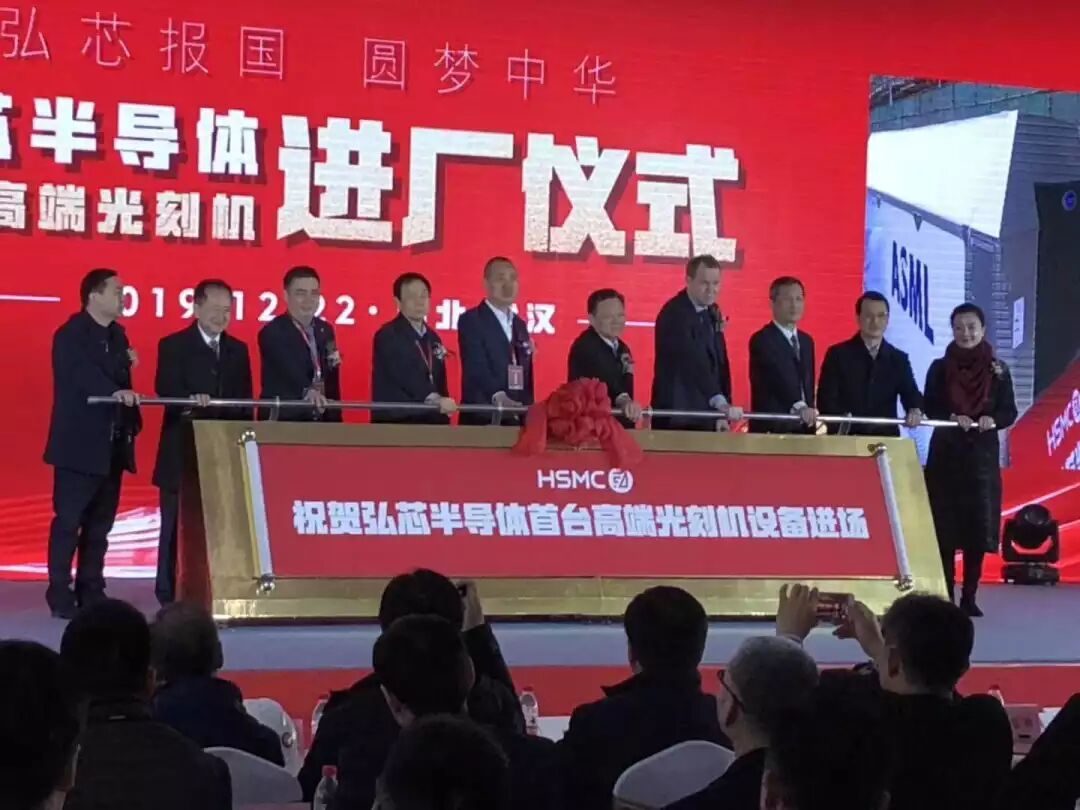 12月22日,武汉弘芯半导体举行了首台高端光刻机设备进厂仪式,虽然不知道具体型号,但现场图片显示,该光刻机制造商为ASML。
