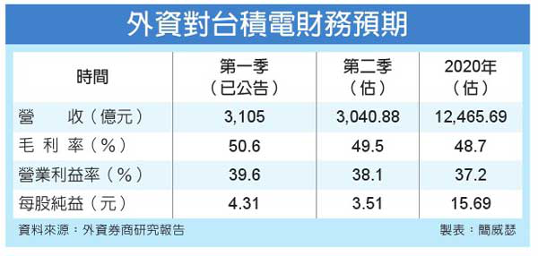 此外,近期各大法人机构密切追踪台积电业绩是否受疫情冲击,不少外资相继下修台积电第二季营收,甚至有人推估苹果将5纳米订单递延一到二季,相关报告赶在台积电本周四法说会前出炉。