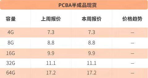 PCBA半成品现货报价维持稳定,与上周基本一致。