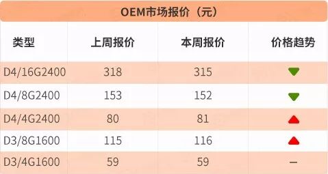 内存OEM市场需求没有什么改变,价格相对前两周较为稳定,就是这两日有部分商家在收货。