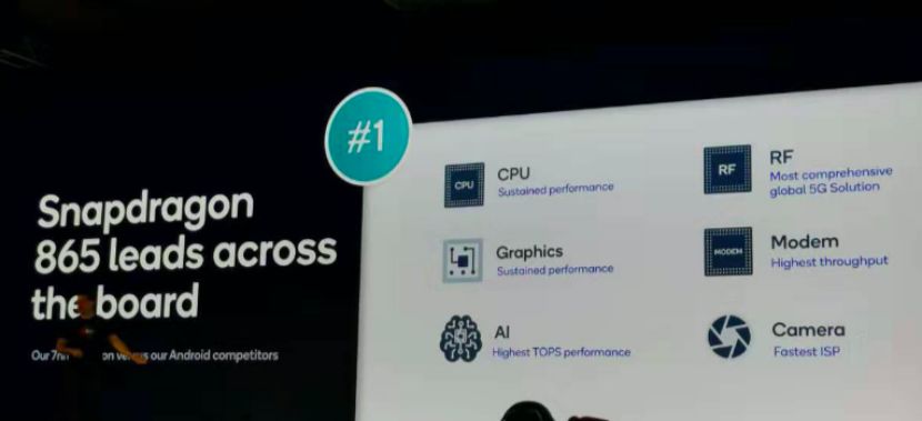 卡图赞展示的PPT显示,骁龙865在CPU、射频、图像、基带,AI和摄像等六个方面的规格参数均为行业领先,整体性能将达到竞争对手3倍。