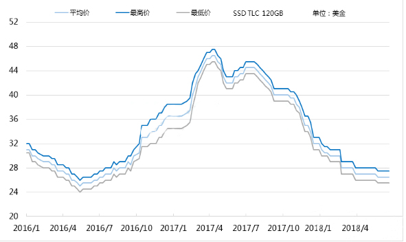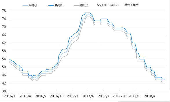 由于先进的64层/72层3D NAND具有更高容量,被广泛应用于SSD产品中,一系列SSD新品,比如三星970、英特尔760P、美光5210 ION、东芝RC100、西部数据Black、金士顿A1000、江波龙P900等层出不穷。另一方面,相比前2年NAND Flash供货紧缺的市场,2018上半年供应明显改善,再加上原厂技术迭代带来的成本优势,6月底SSD价格基本已回到了2016年涨价前的价格水平。