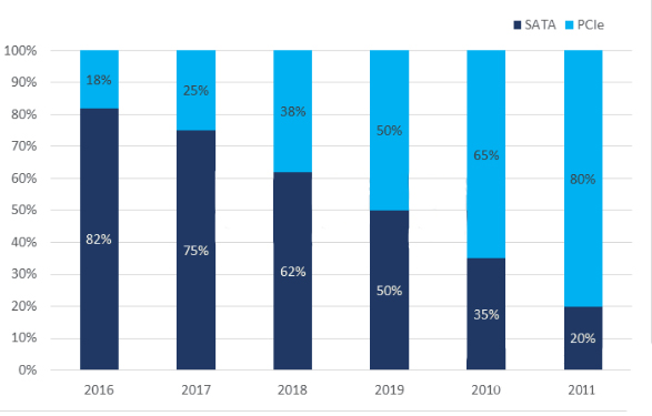 Flash原厂三星、东芝、西部数据、美光、英特尔和主控厂Marvell、慧荣、群联等不仅看好SSD市场需求,更是看好PCIe SSD的发展。2018年Flash原厂新一代企业级SSD扩大市场应用,同时三星970、英特尔760P、西部数据Black等推进消费类SSD由SATA向PCIe发展,而主控厂Marvell、慧荣、群联等控制芯片也正在加快PCIe SSD成为未来市场的主角。