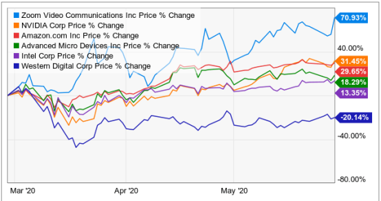 尽管现货价格一直在下跌,但合同价格却是火上浇油,像是疫情造成的在家工作、上课这样的背景下,造福了部分行业,例如,Zoom(ZM),Nvidia(NVDA)和Amazon(AMZN)。