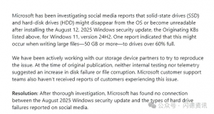 微软声明硬盘故障与更新无直接关联 最近有不少用户反馈称,微软Windows 11更新后可能导致部分SSD出现损坏,尤其是采用群联主控的产品。