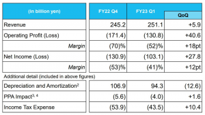 因智能手机等产品需求低迷,导致NAND Flash行情持续恶化、价格续跌,拖累合并营收较去年同期大减32%至2511亿日元;显示本业获利情况的合并营益自去年同期的盈余851亿日元转为亏损1308亿日元,本业连续第三季陷入亏损