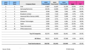 市场遇寒冬,Q1半导体营收英特尔超三星居第一