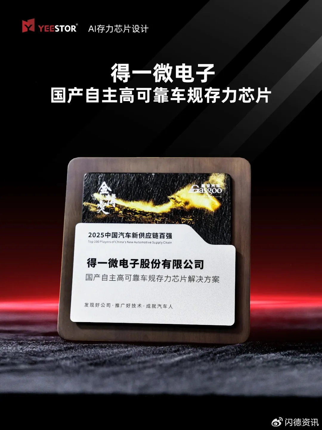 10月30日,2025第七届“金辑奖”颁奖盛典在上海盛大举行。得一微电子(YEESTOR)凭借在车规存力芯片领域的自主创新和规模化上车成果,成功入选“中国汽车新供应链百强”,彰显了国产自主高可靠存力芯片在支撑汽车智能化进程中的核心价值。
