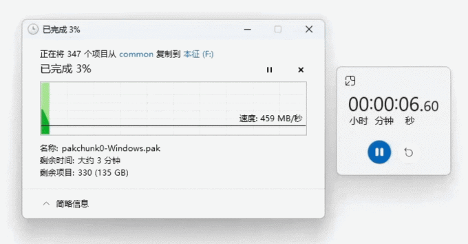 此外我们还测试了SC300对《黑神话:悟空》游戏包文件的转存表现,这款游戏体积大小高达139GB,内部包含大小不一的零散文件与资源包,更能精准反映用户在日常使用操作的性能水平。