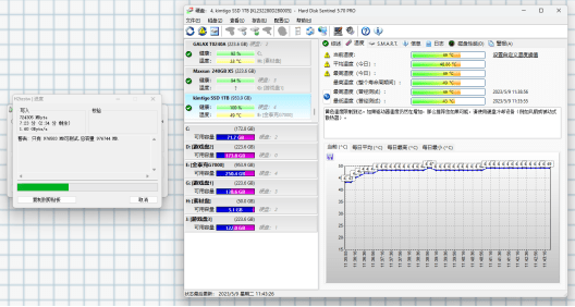 往硬盘中传输文件对于大家来说算是基操了,测试中,我用20GB文件分别在空盘和半盘状态下进行同盘转存。结果可以看到,金泰克G7000不管是空盘还是半盘状态下,传输速度都基本稳定在1.92GB/s,传输完成仅用时9秒。这一速度表现如何?简单举个例子,一次性往金泰克G7000中转存4部5GB大小的蓝光电影,用时不到10秒!