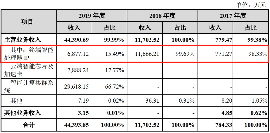 这迎来致命一击。2019 年寒武纪来自华为的营收同比大降 44% 至 0.64 亿元,占比下降至 14% 左右。这也导致终端智能处理器 IP 授权业务从此前近乎的唯一的业绩来源在 2019 年成为占比最低的业务,降至 15% 左右,且短期难以恢复。
