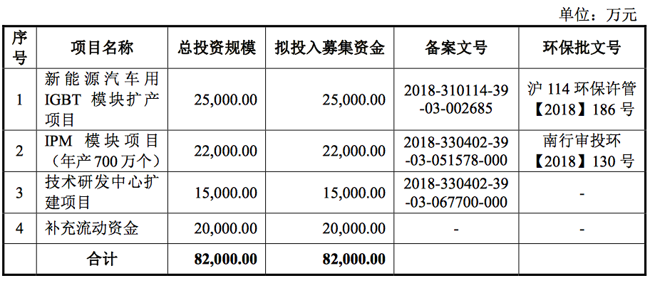 招股书披露,此次嘉兴斯达拟募资8.2亿元,用于建设新能源汽车用IGBT模块扩产项目、IPM模块项目(年产700万个)、技术研发中心扩建项目及补充流动资金等。