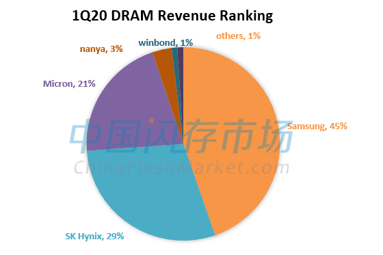 第一季度受季节性因素以及COVID-19的影响,全球智能手机销量下滑严重,但远程办公和在线教育等相关应用增加推动服务器需求强劲增长,在一定程度上弥补了移动需求的下滑。DRAM价格在连续五个季度下滑后,于2020年一季度开始微幅增长,但受汇率的不利影响,本季度DRAM整体销售额环比减少5%至147.3亿美元。