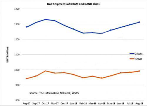 通过图2还可以看出一件事情,半导体行业和半导体设备行业的收入自2017年起双双开始飙升。根据WSTS数据,2017年内存芯片收入增长了61.5%,而整个半导体行业收入增长幅度仅为21.6%。2018年,内存芯片收入预计将继续增长30.5%,相比之下,整个半导体行业收入增速仅为15.7%。不过,2019年内存芯片和半导体行业将重回温和增长,内存芯片收入增速预计将锐降为4.6%,整个半导体行业增速降至5.2%。