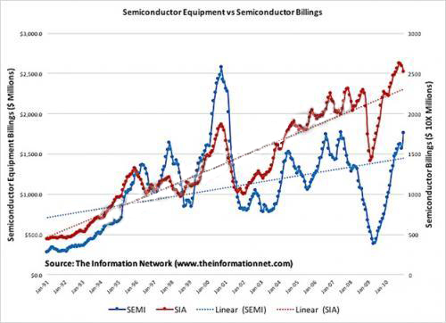 这给包括我在内的一干分析师们带来了一定的难题。半导体设备资本支出和半导体行业收入的脱节,给基于半导体行业收入增长预测半导体设备行业的增长带来了很大挑战。