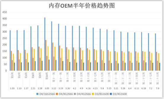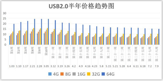 据闪德资讯统计,2020年上半年的存储市场现货价格呈现缓跌的形势,内存OEM、SSD、USB等无一幸免。近期有市场传言,存储产品后期可能会出现较大的跌幅,提醒大家注意风险。这个传言主要是说某原厂在GOOD DIE芯片部分下调了10%左右售价给OEM成品客户而引发的担忧,具体情况还有待考证。