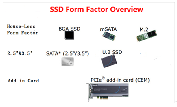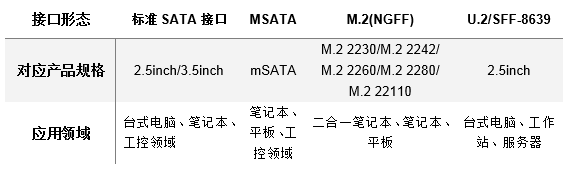 接下来讲到的就是SSD现行的主要接口形态,详情见下文: