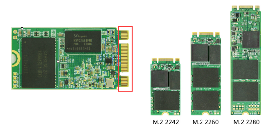 3、M.2接口:最初叫NGFF,全名是Next Generation Form Factor,尺寸比mSATA小巧,产品形态较mSATA也更为丰富,对应的产品有M.2 2230/M.2 2242/M.2 2260/M.2 2280/M.2 22110,在逐步取代mSATA。单面厚度是2.75mm,双面厚度为3.85mm。