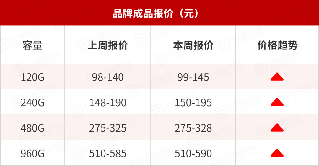 本周品牌大致报价,所有容量全线上涨,涨幅区间在1-3%。