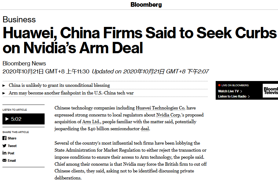 事实上,今年8月,业内传出英伟达有意收购Arm的消息后,已经在半导体产业界引发热议,不同于黄仁勋认为的“双赢”结果,有业者结合国际贸易形势看坏对这一交易前景,认为收购案将面临重重障碍, :“除了各国监管障碍外,不要忽略一个事实——英伟达恰好是Arm授权客户们的竞争对手,就这一点开说,答应的可能性能有几成?”