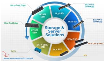 固态硬盘外形设计一直都在改进,以跟上越来越高的应用需求。Amphenol ICC 开发下一代产品时始终领先一步,其优势从早前到目前的产品均有体现。早期固态硬盘采用 SAS 2.0/3.0 等标准,未来的接口则将基于 SAS 4.0 等高级标准。同样,从 PCIe 3.0 发展到 4.0,将满足第 4 代和第 5 代固态硬盘的要求。