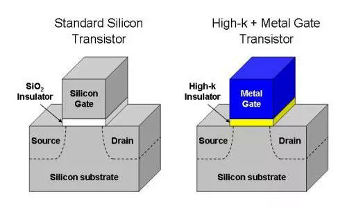HK就是high-K栅介电层技术,而MG指的是metal gate--金属栅极技术,两者本来没有必然的联系。不过使用high-k的晶体管栅电场可以更强,如果继续使用多晶硅栅极,栅极耗尽问题会更麻烦。另外栅介电层已经用了新材料,栅极同步改用新材料的难度也略小一些。所以两者联合是顺理成章的事情。