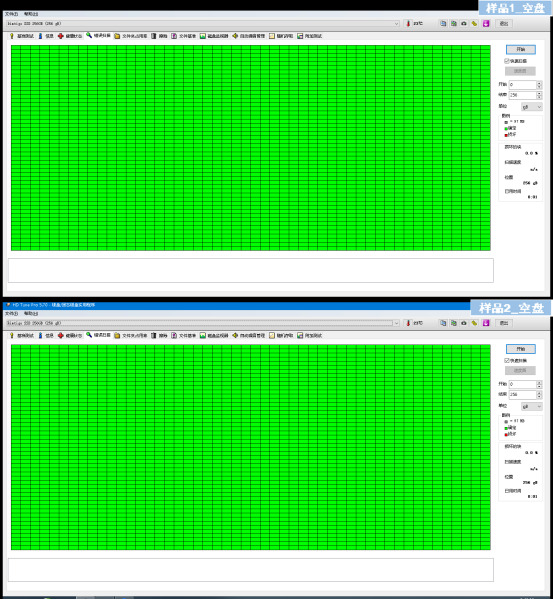 此时会有一个问题出现,高低温后硬盘能用,但不代表没有坏块产生。为了检测产品内部是否有产生坏块,我们先用HD Tune进行错误区域扫描。