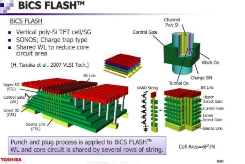 尽管东芝一直在做BiCS,但业界一直有传言说东芝做不出有效的BiCS,量产部分用的其实是TCAT 工艺。东芝方面此前并未就这一传言做出任何回应。