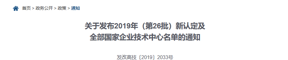 2019年新认定及全部国家企业技术中心名单
