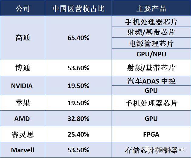 然而,尽管大陆地区海思和紫光上榜,但可以看到的是,高通、博通和美满电子在中国区营收占比达50%以上,国内高端 IC 设计能力严重不足。可以看出,国内对于美国公司在核心芯片设计领域的依赖程度较高。