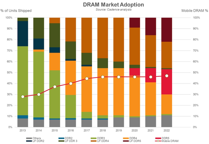 在问题的系统芯片方面,我们已经知道,AMD的EPYC“ 热那亚 ”,以及英特尔的Xeon可扩展的“ 蓝宝石急流”将支持DDR5 DRAM当他们在2021〜2022的时间内推出。值得注意的是,Cadence的临时DDR5 IP具有“十几个设计插件”,因此目前在不同的开发阶段有超过12个支持DDR5的SoC。这些片上系统中的某些将较早推出,而某些将在以后推出,但是很明显,SoC开发人员对这种技术有浓厚的兴趣。
