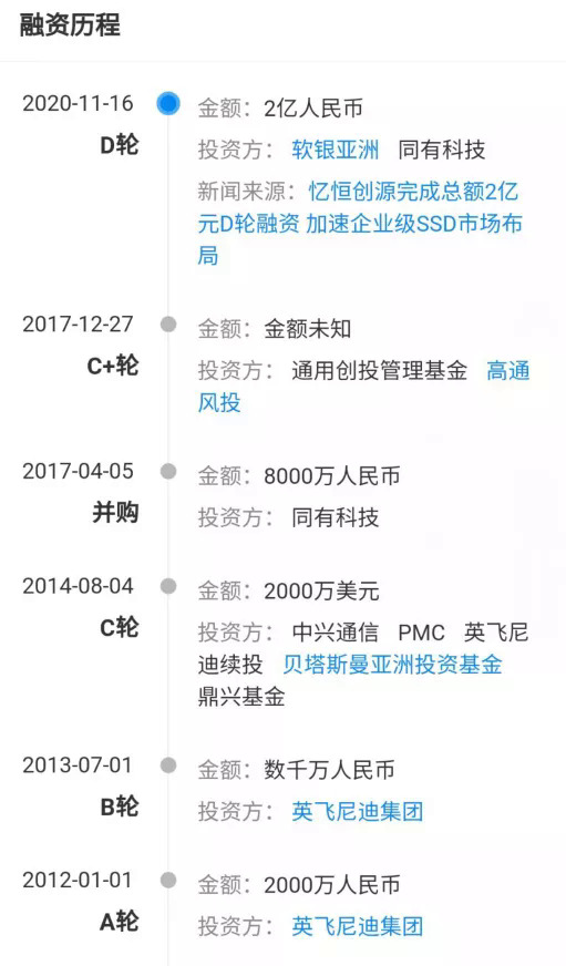 近日,软银看上了一家北京的企业级SSD企业,它就是北京忆恒创源科技有限公司,刚刚宣布完成总额2亿元人民币的D轮融资,由软银亚洲风险投资公司领投,同有科技跟投。此前这家公司获得过腾讯、高通和中兴等企业投资,也算是站在巨人肩上的公司了。闪德资讯编辑认为,这明显是为上市做准备,通常D轮后的独角兽企业只要营收数据不错,上市基本没啥难度。