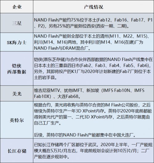 据不完全统计,2020 年 NAND Flash 扩产计划中