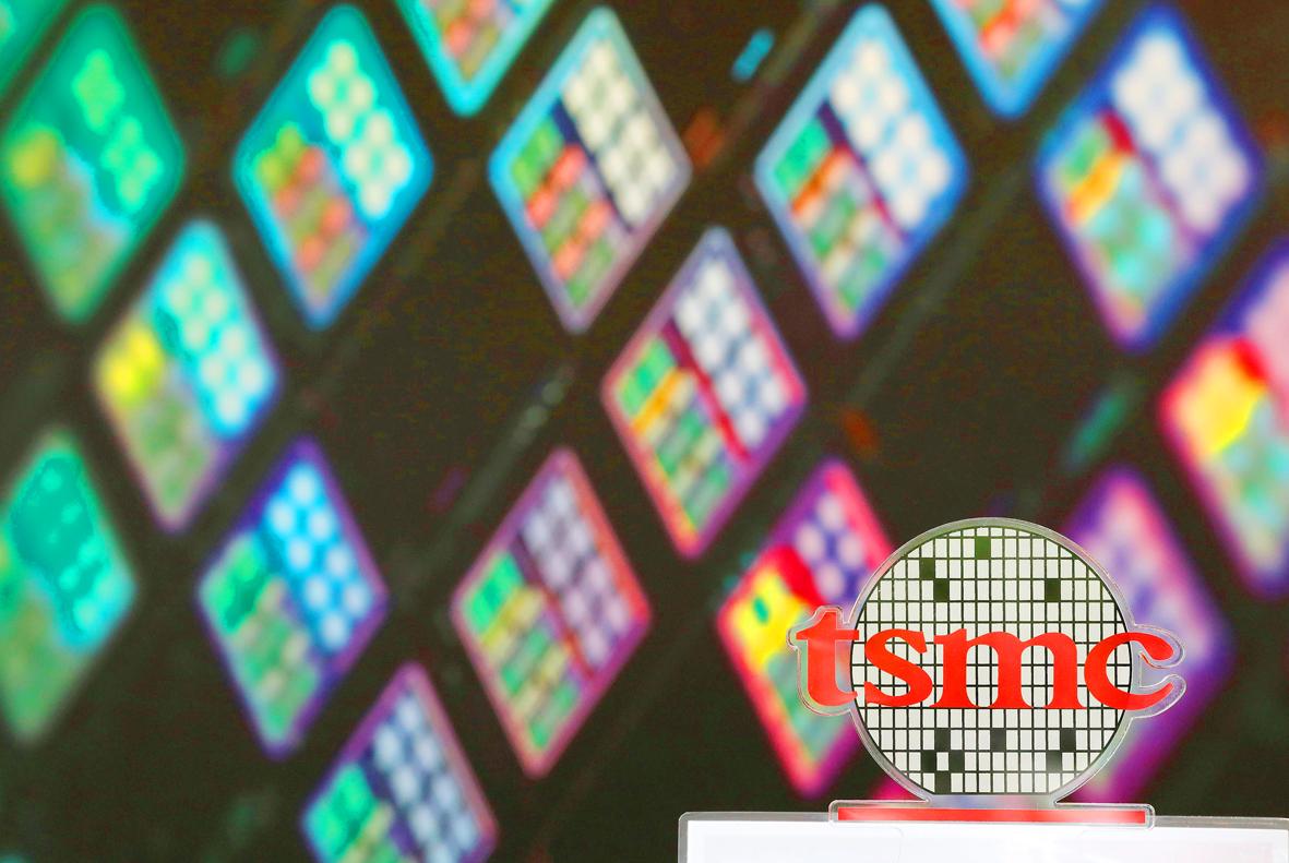 台积电(TSMC)的徽标于2018年8月31日在其位于新竹的总部合影。