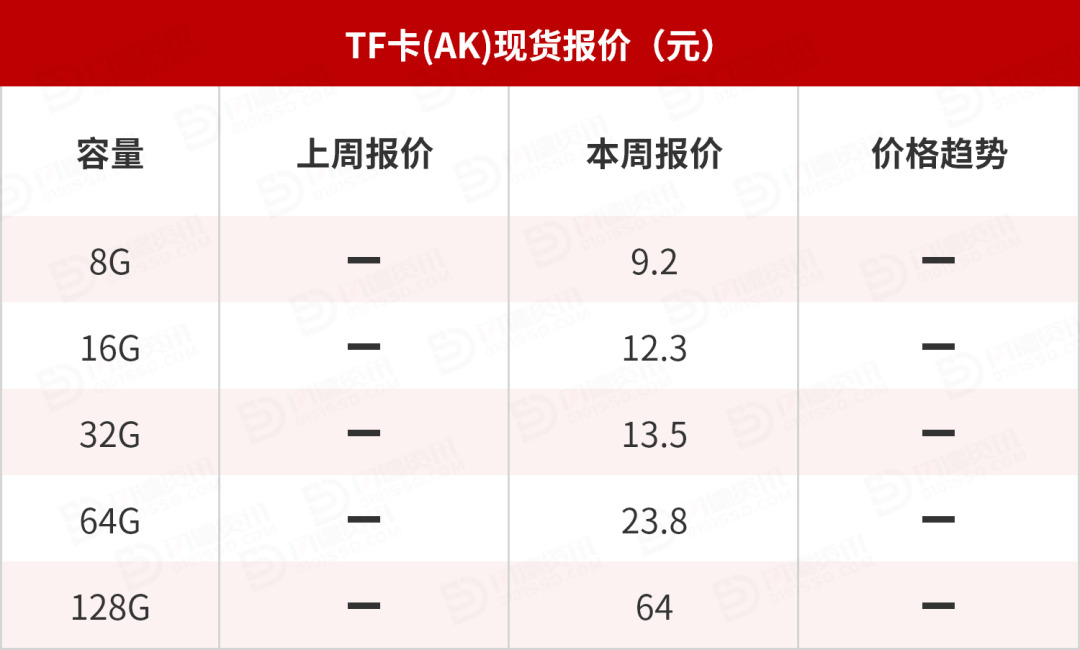 另外本周闪德资讯推出了TF卡现货报价板块,下周同一时间更新,记得把闪德资讯公众号星标“置顶,随时关注!