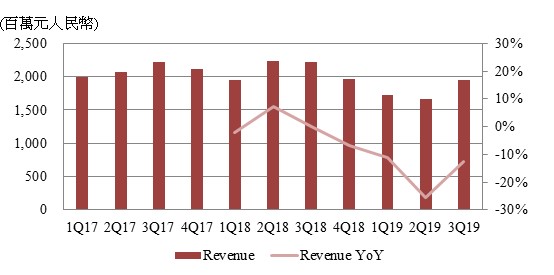 ▲2017年第一季~2019年第三季三安光电营收表现。