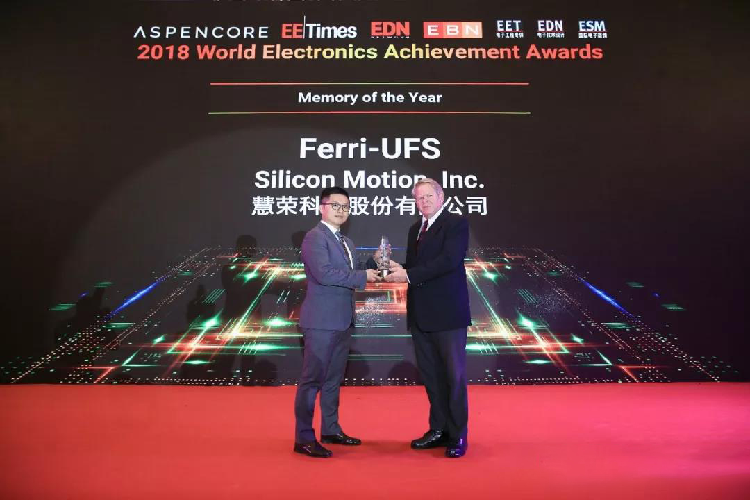 2018年11月9日,中国深圳——在设计和推广固态存储设备专用NAND闪存控制器方面处于全球领导地位的慧荣科技(Silicon Motion Technology Corp., NasdaqGS: SIMO)日前荣获全球双峰会所颁发的“2018全球电子成就奖之年度存储器”,以表彰其多年来在NAND控制器领域所做出的杰出贡献。颁奖典礼于11月8日在深圳举行。