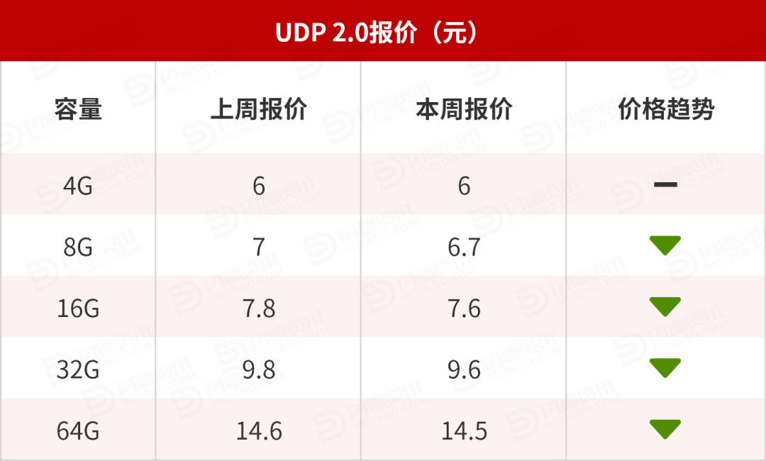 UDP 2.0现货板块,除4G容量报价保持不变,其他容量呈现下跌趋势,跌幅区间在 1-4%;