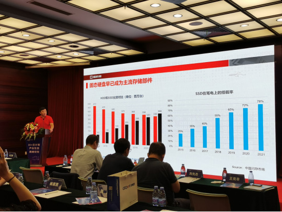 在“AI+云计算产业生态高峰论坛”上,国科微存储事业群总裁康毅在演讲中表示,当下时代,数据不停增长,例如在2020年,人们平均与手机互动次数达到1426次,而到了2025年,互动次数将达到4909次;国外使用谷歌搜索引擎的频率是平均50亿次一天,而这些不断攀升的数据量正推动存储市场进入新一轮的变革,固态硬盘即将超越传统的机械硬盘,成为数据时代的存储“新贵”。