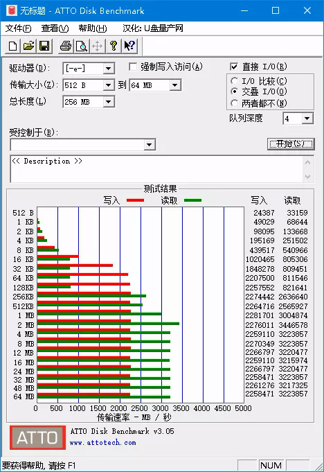 电竞游戏最忌讳卡顿,画面不流畅,极其考验固态硬盘的稳定性,正所谓,高速飙车不离道,弯道漂移不变档。利用ATTO DISK Benchmark测试不同大小文件传输速度。