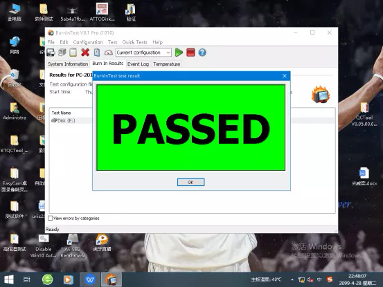 下面将进行满载常温老化测试。使用软件BurnInTest,进行3天的满载运作,期间软件会不停读写硬盘里每个存储单元,以此考验搭载国产存储组合的光威弈Pro SSD的满载工作能力。