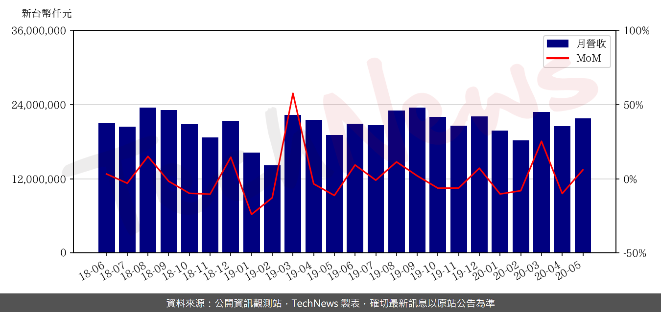 因此,以此为基础,扣除第2季前两个月的营收合计423.24亿元,预计6月份的营收将会落在新台币197.76亿元到245.76亿元之间,有机会创下近4年来的单月营收新高纪录。