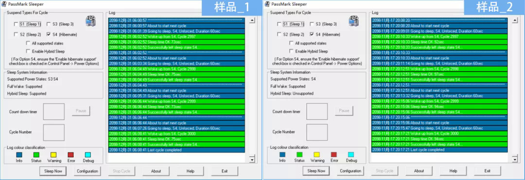恐怕很多人没有想到,虽然固态硬盘功耗不高,但作为电子存储部件来说,不稳定的电源会引起固态硬盘各种奇奇怪怪的问题,比如:便宜意味着抛弃了质量,但你想要好质量又要便宜,没有老司机带路,没有品牌认知,你怎么去选择呢?你得知道能满足你日常所需的硬盘有很多,但能陪你走的更久更远的硬盘,需要的是“好硬盘”。第一,性能。买固态硬盘就是为了提高电脑的工作效率,让电脑加速。第二,抗老化性。硬盘能否在承受高强度的满载运作,依旧能保证数据安全。第三,耐用性和稳定性。固态硬盘是有寿命的,质量好的固态一般都可以用3年以上。以主流产品为主,现在市场上主要售卖的都是TLC存储颗粒的SSD。固态硬盘是集成电路存储,在读写过程中需要持续通电才能进行,所以对于SSD而言,一旦发生异常断电,不仅仅会造成尚未保存的数据丢失,极端情况下还会导致以前写入的数据出错,让SSD无法被系统识别,换句话说,它已经完完全全变成了一块“砖头”。而耐久性和稳定性则是说明这块固态硬盘能够经受住异常断电等而不坏,并且保证数据的安全。以固态硬盘的使用习惯来测,正常一块盘一年不会经历500次的重启、休眠和断电的,为了展示好硬盘的标准,华仔将把标准拉到3000次,也就是重启、休眠和断电分别进行3000次,测试盘选择金泰克C320 SATA SSD,因为它使用的是国产联芸科技主控以及长江存储的纯国产化存储颗粒,并且能够做到绝对抗老化,作为展示好硬盘的标准是再好不过了。使用PassMark Sleeper软件,可以让电脑定时进入睡眠/休眠状态,并定时自动唤醒。设置休眠次数3000次,每30秒运行一次。