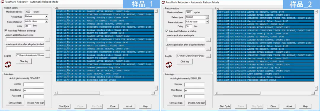 整个3000次睡眠再唤醒的过程中,测试界面并没有出现红色Error错误提示,也没有卡顿的黄色警报和死机蓝色警报,完美通过。在PassMark Rebooter中选择Reboot重启测试,设定自动登陆和测试循环次数3000次每次重启时,程序都会检测系统运转正常否,有无出现系统文件遗失导致重启失败。从结果上来看,过程中并没有出现错误红色提示。断电测试还有没有模拟软件,我们选用的是利用服务器控制测试平台,达到遥控断电的目的。首先将待测的金泰克 C320 SSD作为系统盘,装载目前最先进的Win10操作系统,并让它在测试平台正常运行。然后我们建立一个服务器平台,这个服务器可以用来控制多个测试平台的电源,以达到自动断电的目的。