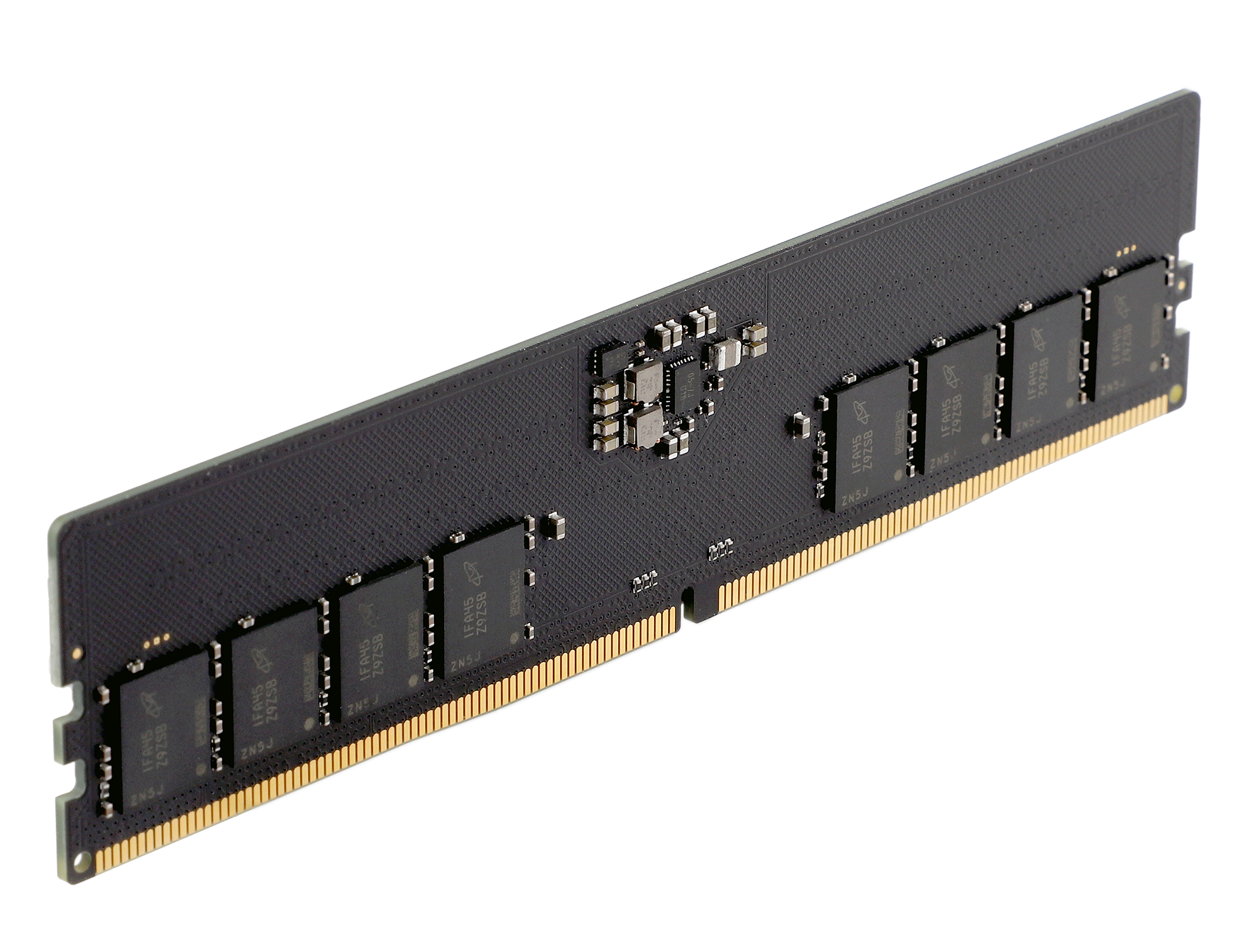 朗科自产的DDR5内存模组单根/单面16GB容量,采用Micron DDR5颗粒,编号为Z9ZSB ES,搭配KO(先进)最新黑板PCB(板号:KO-8802A-5)。