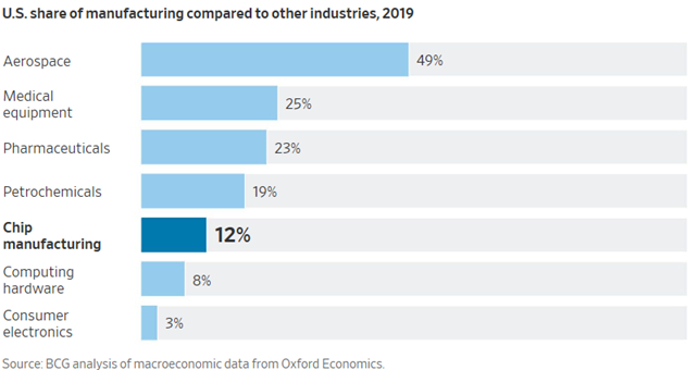 分析人士表示,美国政府的激励措施可能有助于扭转这一趋势。据估计,一家顶级芯片代工产业厂(生产用于电脑的中央处理器)的建造和运营10年内耗资可能超过300亿美元。因此,帮助抵消部分成本的财政援助可能会改变公司是否投资的考量。