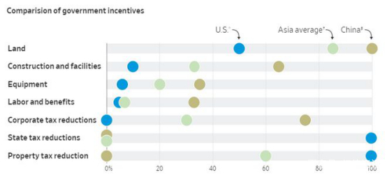 美国历来没有为芯片代工产业提供联邦级补贴的措施,尽管各州有自己的支持举措,包括补贴土地和税收减免。相比之下,在亚洲,各国通常提供免费或廉价的土地,并在购买制造设备方面提供更多帮助,这些设备占芯片代工产业的大部分成本。
