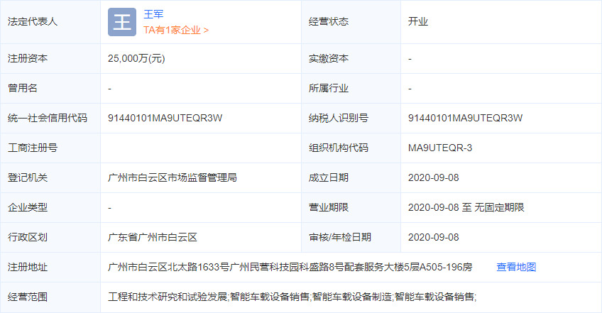 其经营范围包括工程和技术研究和试验发展;智能车载设备销售;智能车载设备制造;智能车载设备销售。该公司由华为技术有限公司100%持股。